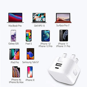 Type C PD 20W + USB QC3.0 Wall Plug provides a much faster charging speed for your Android, IOs devices. This QC3.0 USB + PD 20W USB-C Charger provides faster charging speed and can be charged from 0% to 50% within 30 minutes. Ideal for travelling because it is compact and can easily slide into travel bags.
